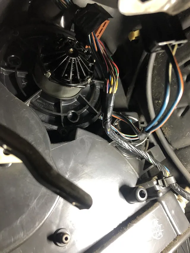 音の原因はブロアーモータとファンの取り付けが劣化と熱で破損してました
