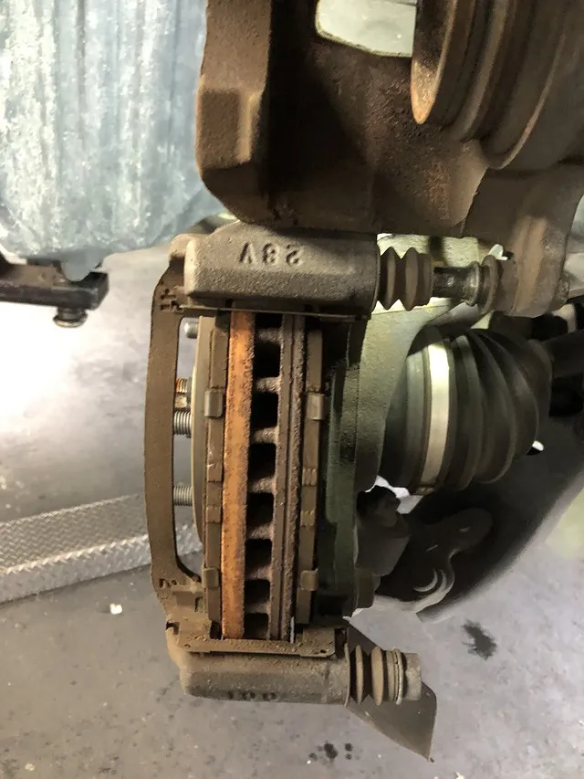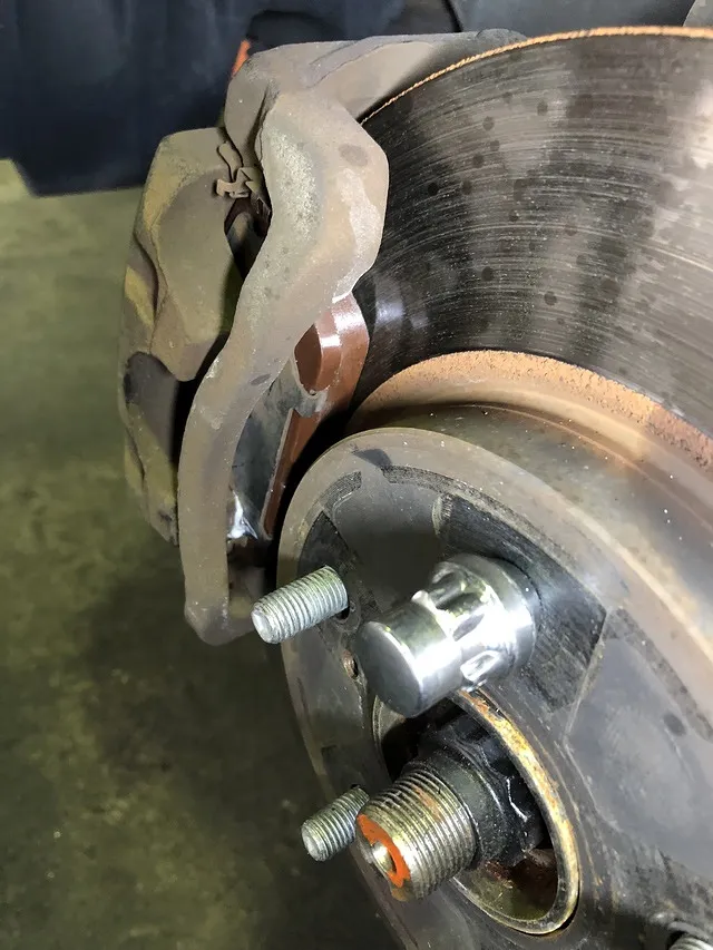 ブレーキを踏んだときに、止まりしなに金属音がするので…とのこと。早速原因をチェックしていきます。