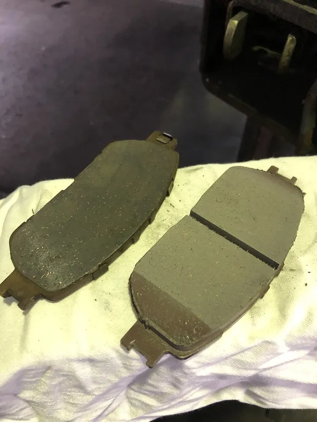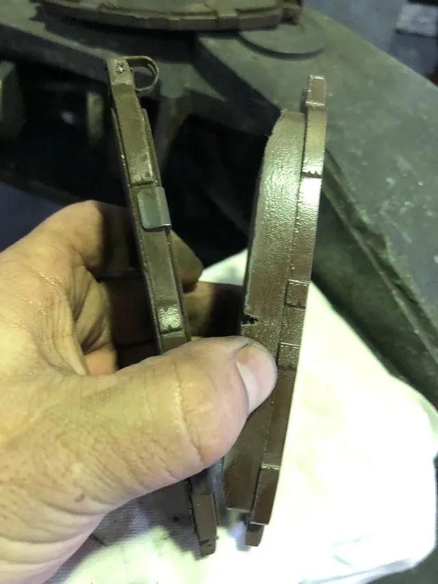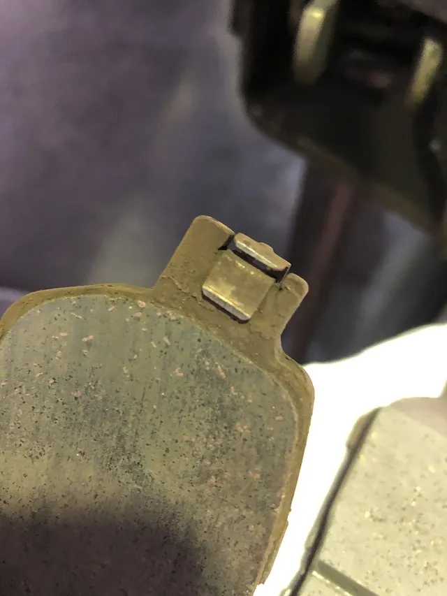 原因は、ブレーキパッドの摩耗。パッドセンサー(金具)がディスクローターに